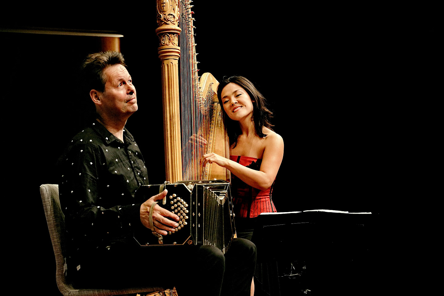 De koning van de bandoneon, Carel Kraayenhof, en de koningin van de harp, Lavinea Meijer, ontmoeten elkaar In Concert met kleurrijke muziek…